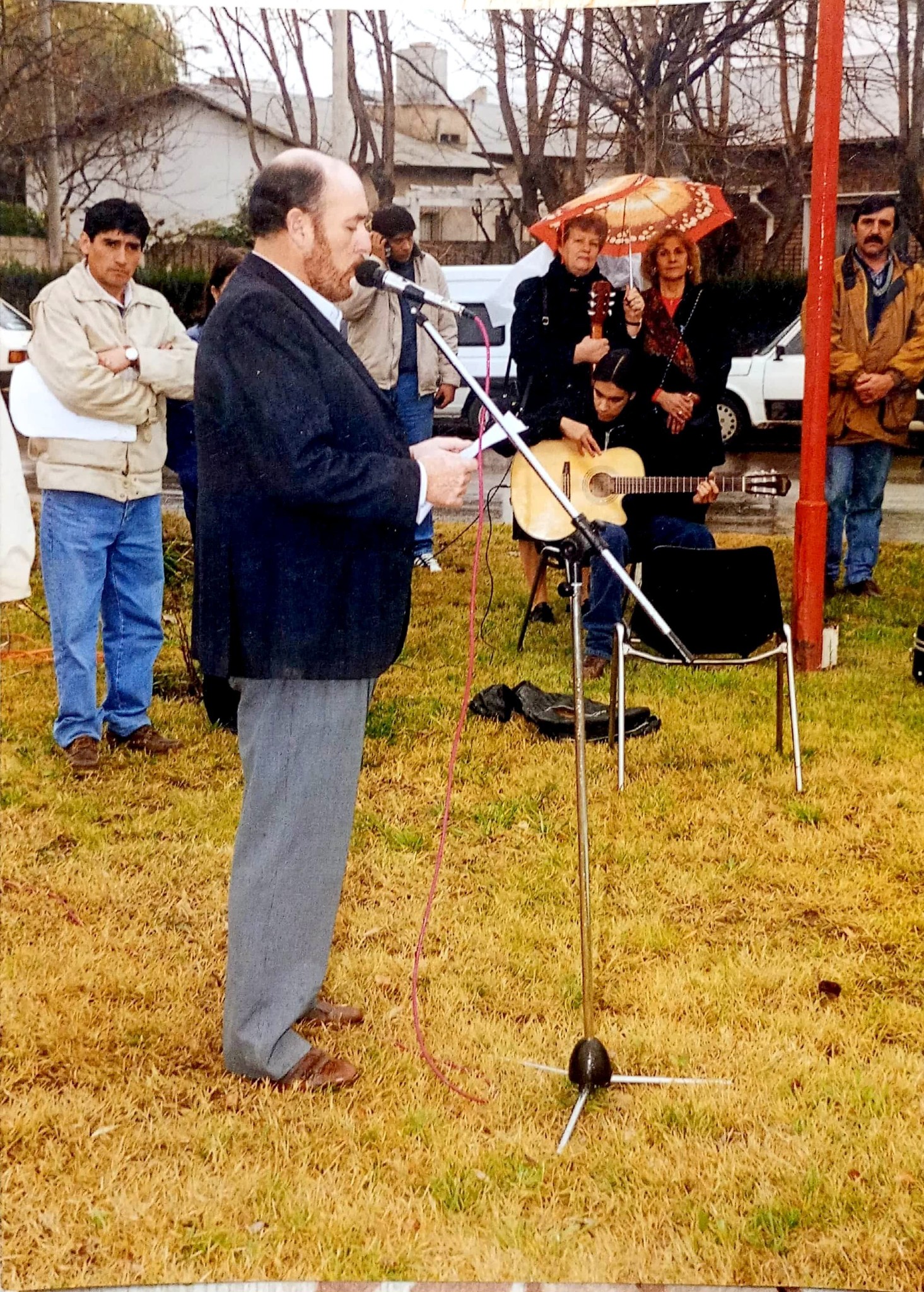 Ese día caía una leve llovizna y hacía mucho frío, y ahí estábamos con mi viejo participando del acto, tocando una canción que él compuso en el año 84, la canción se llama "Soldado", para mí una de sus mejores composiciones, la cual muchos años después (en 2011) tuvimos la suerte de grabar para el disco "Cantores de mi pueblo". Si quieren escuchar la grabación, pueden ir al canal de YouTube de mi amigo Ariel Isernia, allí la van a encontrar.