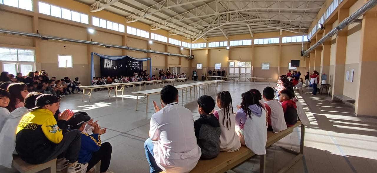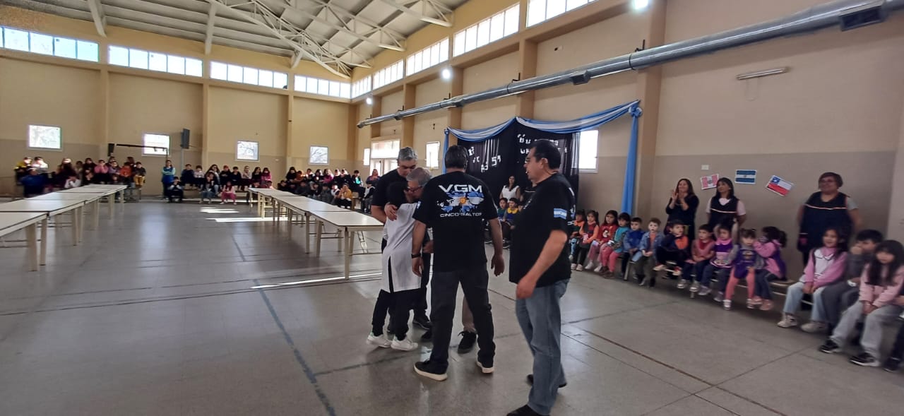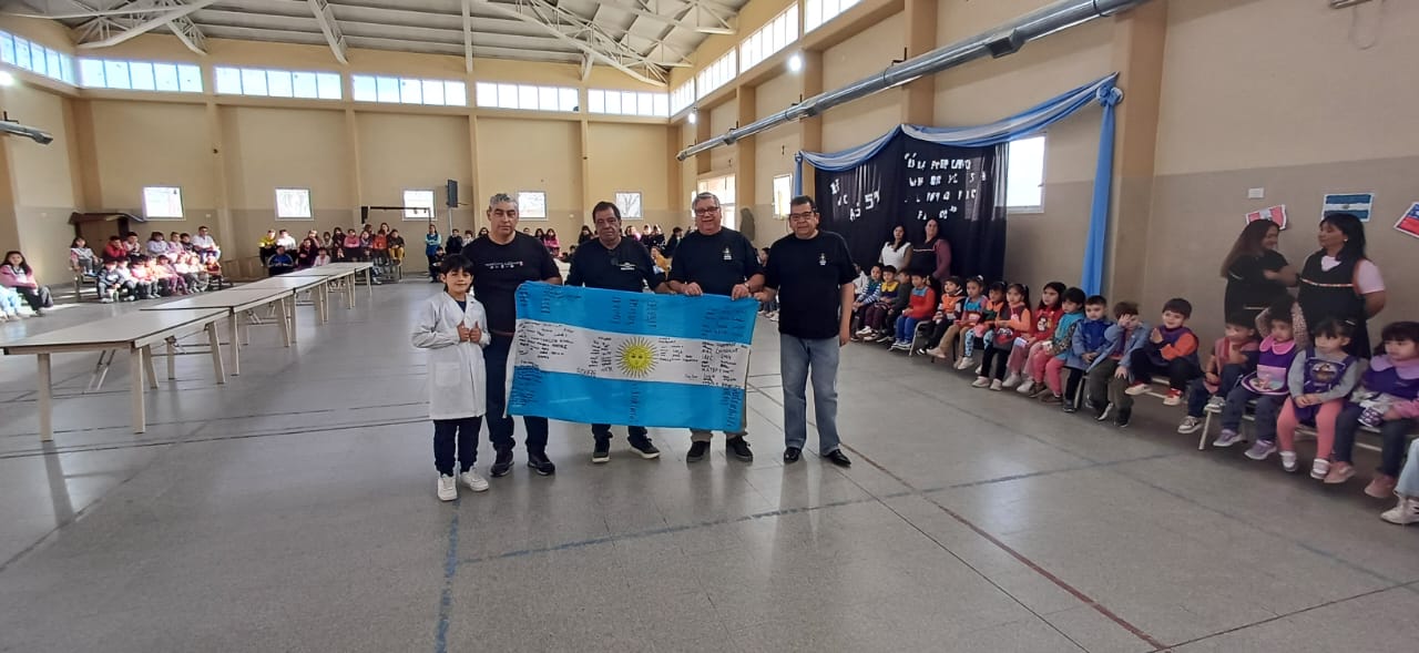 Un grupo de Veteranos de Malvinas de Cinco Saltos visitó la Escuela N° 369, Héroes de Malvinas.
