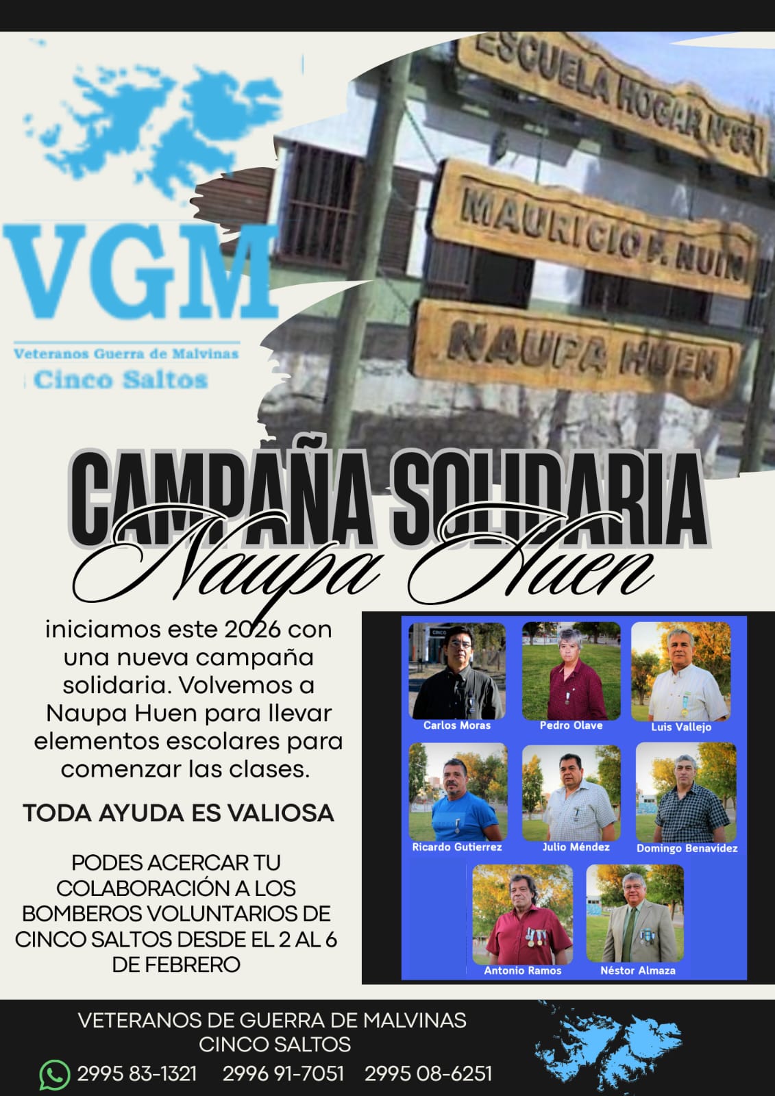 Los Veteranos de Malvinas de Cinco Saltos invitan a la comunidad a colaborar con elementos escolares.